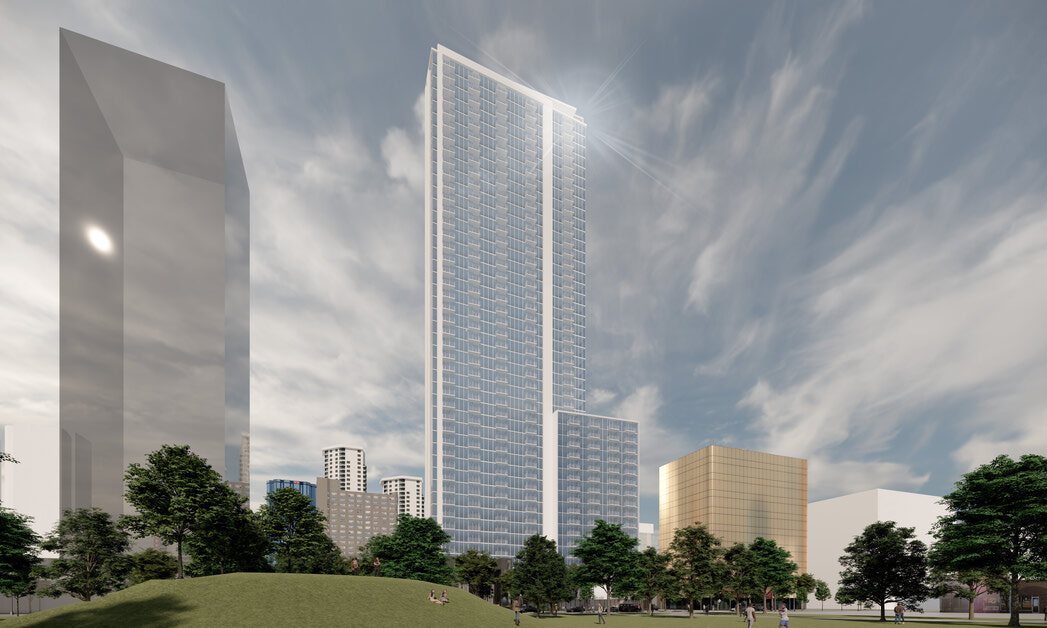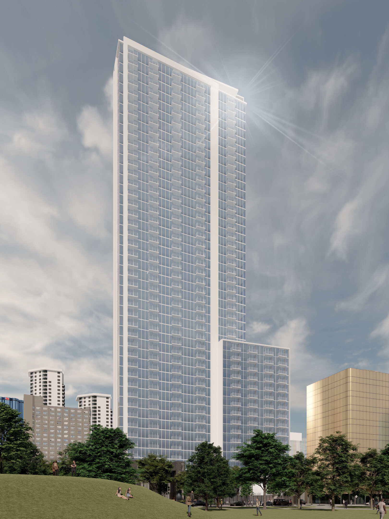 A Slender Landmark Framing Urban Life and Parkside Living